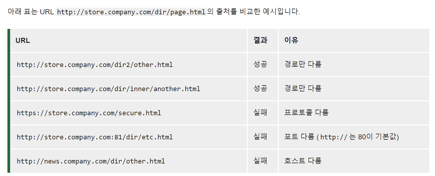 https://developer.mozilla.org/ko/docs/Web/Security/Same-origin_policy